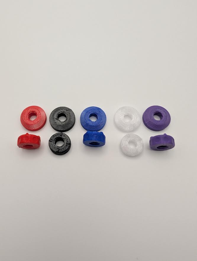 Comes with 3x black 1/4 nylon screws, 4x Nuts and 4x Flat Nuts (Color of your choosing)